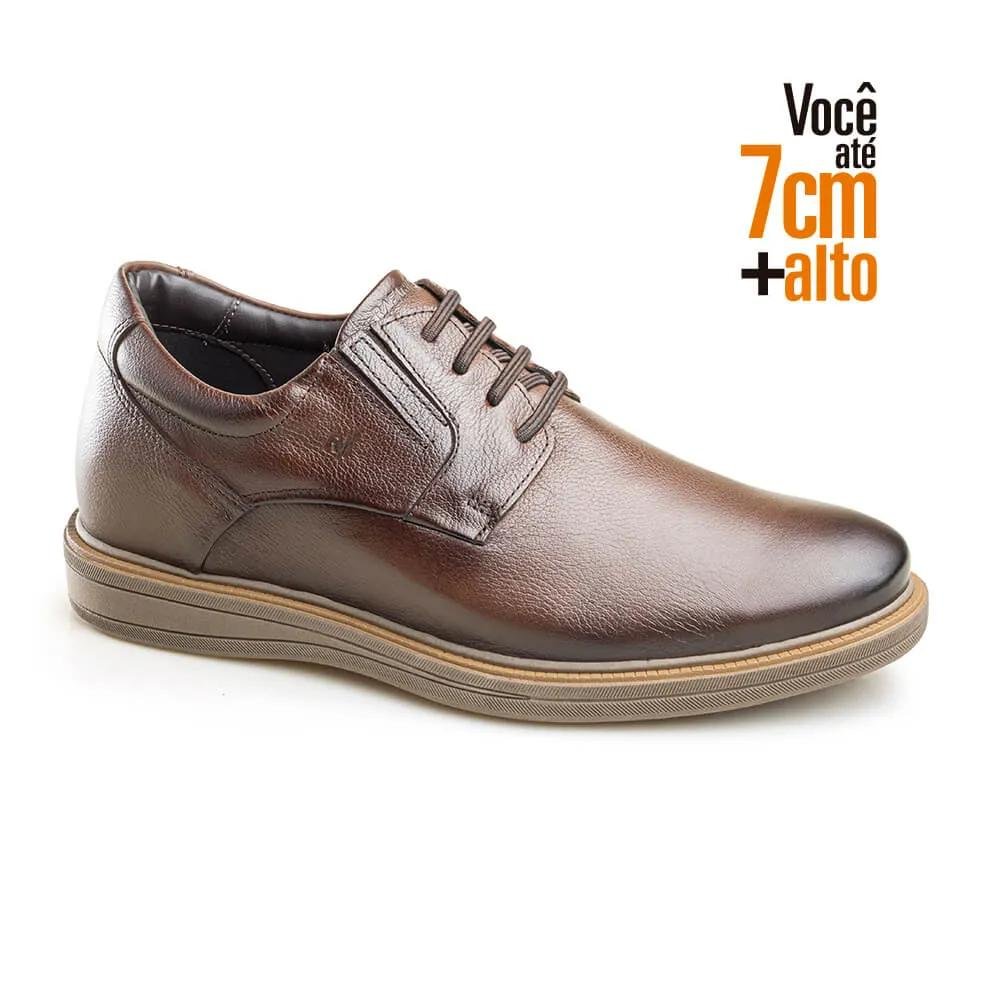 A linha Alth da Rafarillo traz o sapato masculino com salto embutido. Confeccionado com interior em PU, material antitranspirante e solado de borracha, este sapato masculino oferece mais conforto e segurança ao caminhar com seu sapato de couro. Perfeito para homens de baixa estatura. Sua calcanheira elevada em PU derramado somado ao salto externo do sapato, atinge até 7 cm de altura.Este sapato masculino com salto interno, além de ser totalmente em couro, possui abertura lateral com elástico, facilitando o calce.