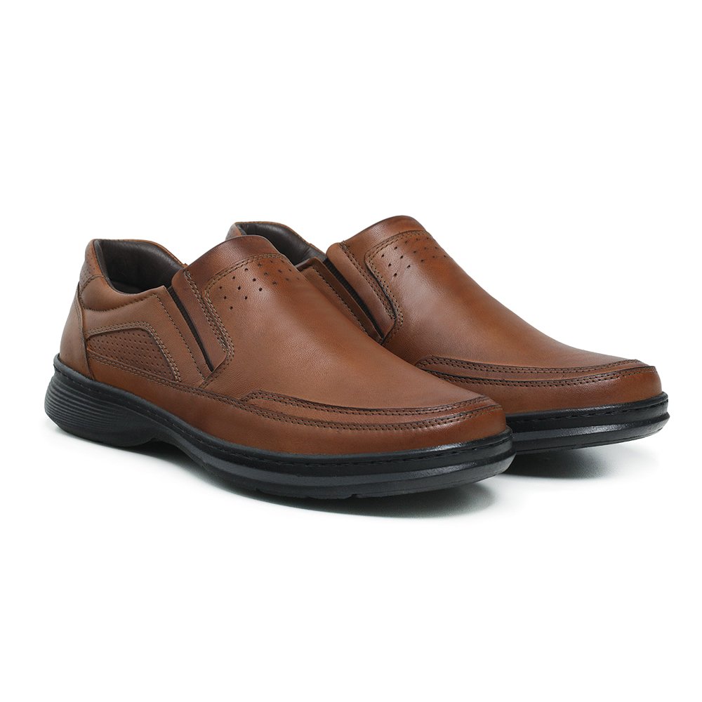 Sapato Casual em Couro Krn Shoes com Elástico e Detalhes em Costura