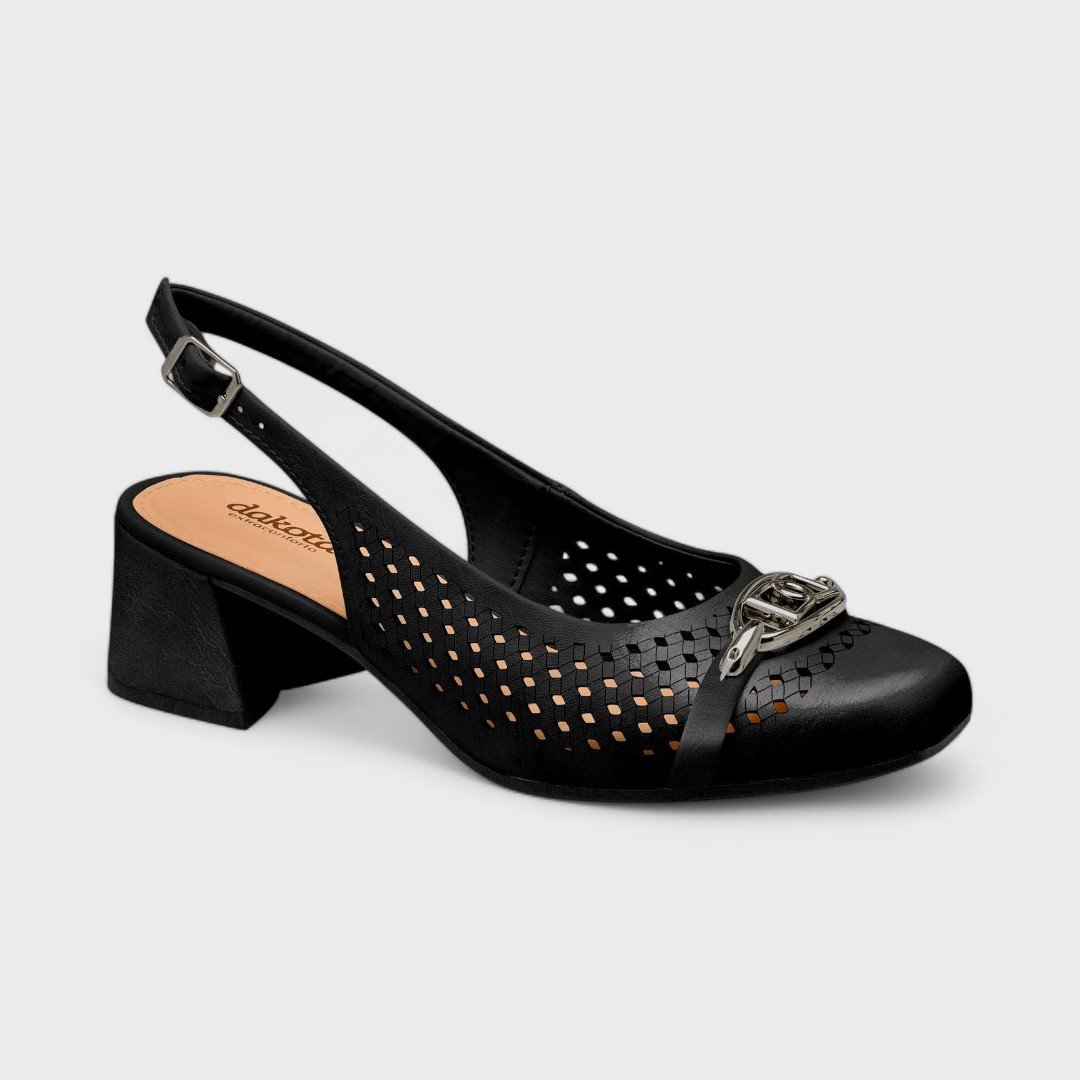 O Sapato Dakota Feminino é a escolha perfeita para quem busca elegância e conforto em um único calçado. Com salto de 6 cm, este modelo aberto na parte de trás possui um design sofisticado que remete ao estilo clássico e atemporal, ideal para diversas ocasiões. Seu cabedal é confeccionado em material macio, proporcionando um encaixe confortável aos pés.