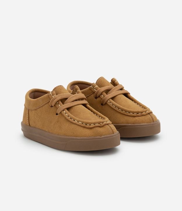 Sapato dockside infantil confeccionado em material com textura de camurça fake, trazendo toque macio e visual moderno. Possui amarração frontal, cabedal estruturado e solado em PVC que oferece firmeza na pisada. Um modelo versátil e confortável para compor looks casuais do dia a dia.
