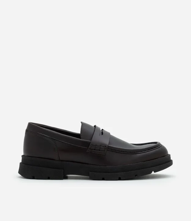 Sapato em PU com Efeito Vinil e Sola Tratorada Marrom