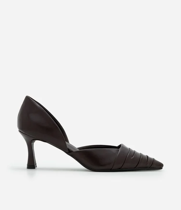 Sapato em PU com Recorte Lateral e Bico Fino Marrom