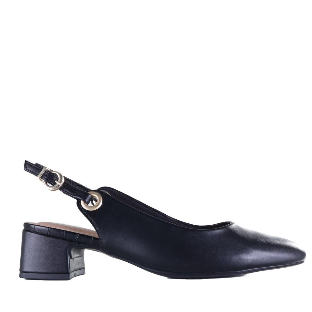 Sapato feminino slingback elegante e sofisticado, confeccionado em material de alta qualidade. Possui delicados pespontos que agregam charme e refinamento ao design. A tira traseira ajustável conta com uma fivela que proporciona melhor ajuste e conforto ao calce. Perfeito para compor looks modernos e versáteis, do casual ao sofisticado.