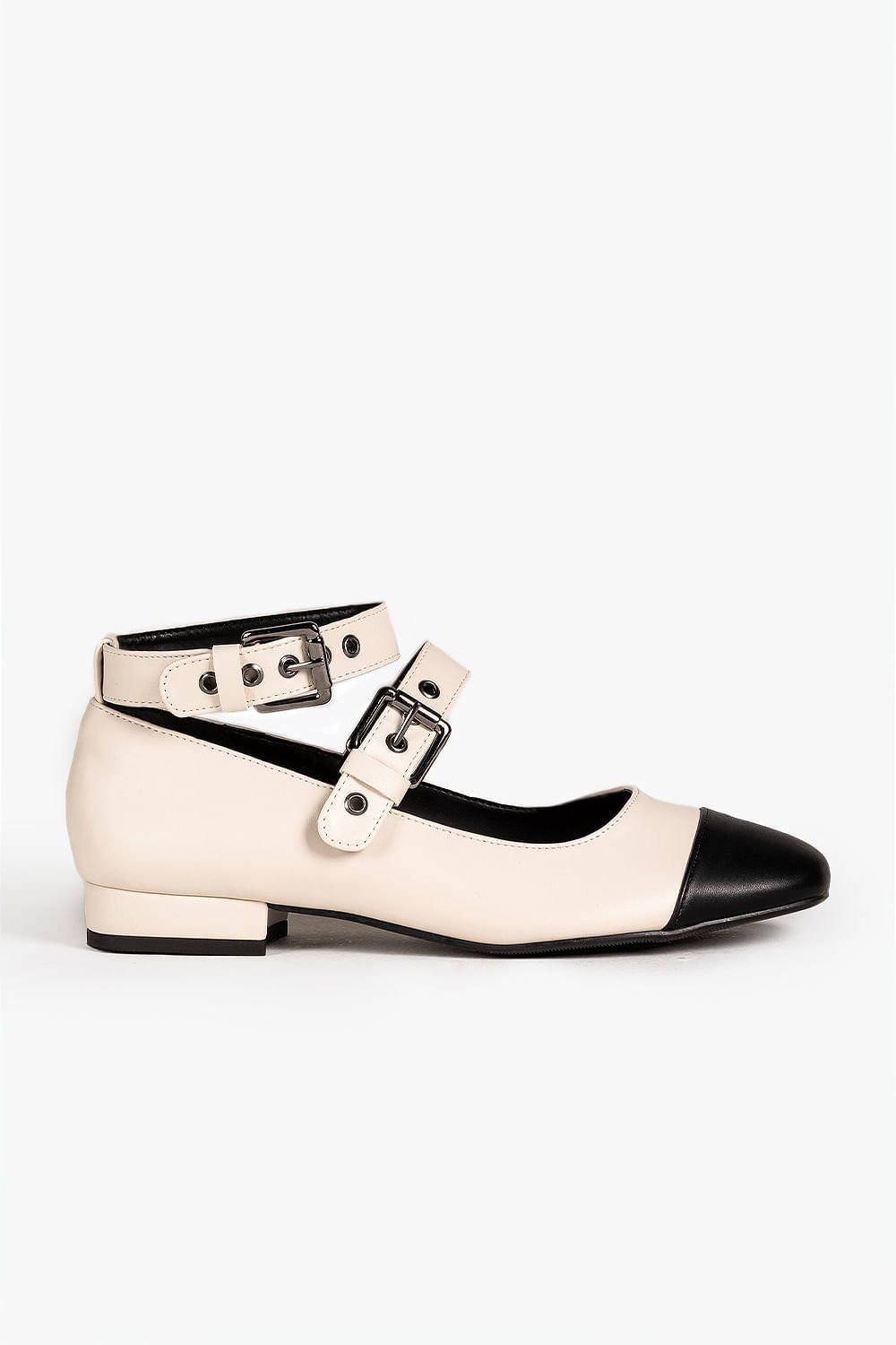 Sapato Feminino Boneca Salto Baixo Mundial Dayara Branco/Preto