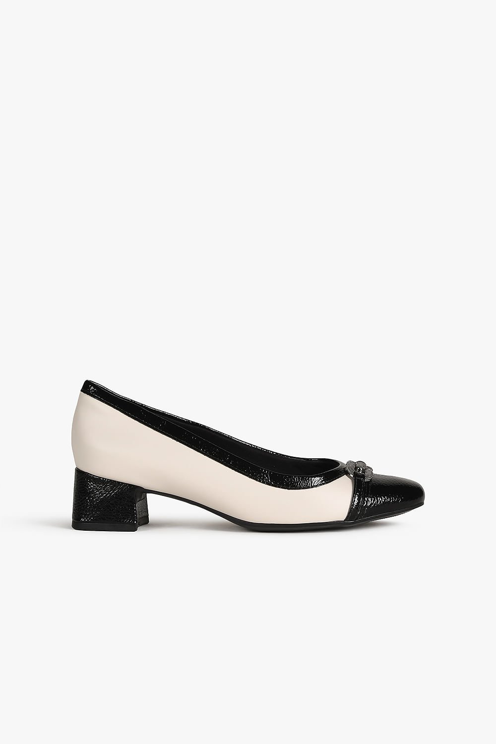 • Sapato Feminino Salto Baixo Comfortflex Roseli Branco/Preto 1