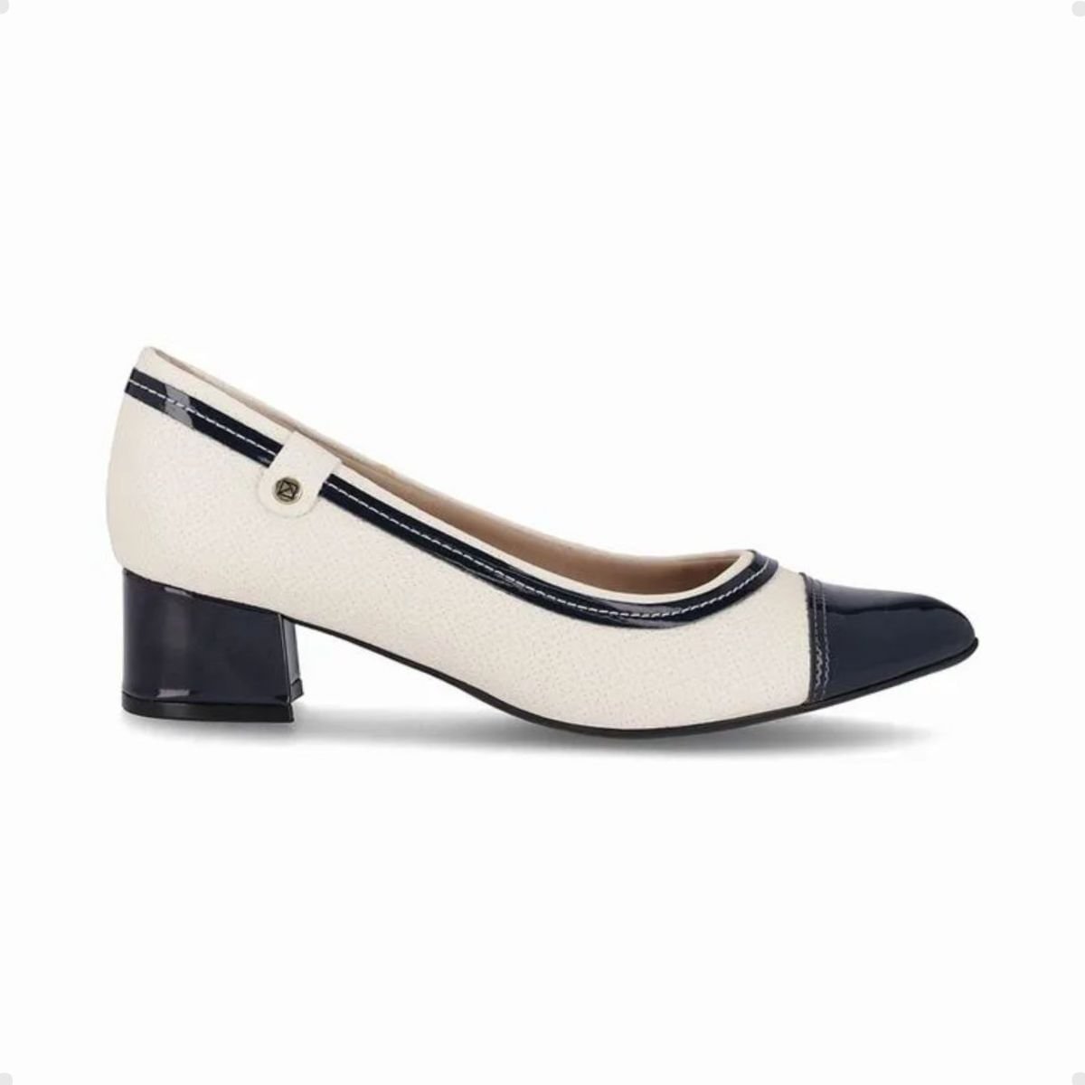 Sapato Feminino Salto Médio Grosso Piccadilly Branco Branco/Azul