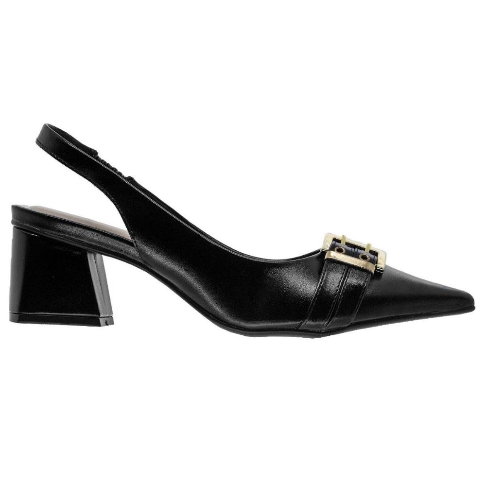 Sapato Feminino Salto Médio Slingback Bebecê T3838-536 Preto Preto