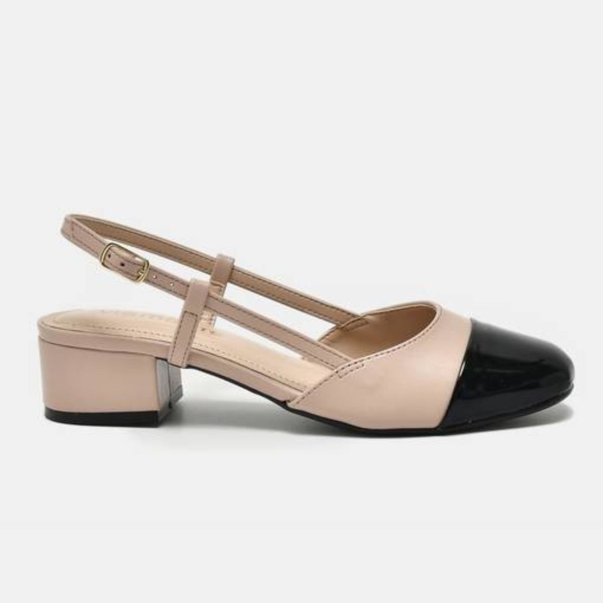 O sapato scarpin da Via Marte é um calçado de destaque. Seu solado apresenta um salto baixo grosso e bico quadrado, proporcionando um visual moderno. Sua modelagem apresenta a parte do calcanhar aberta e a parte da frente fechada, criando um visual refinado. As tiras envolvem delicadamente a parte do pé que fica à mostra, finalizando com um fechamento por fivela na lateral, proporcionando um ajuste perfeito. Com seu design sofisticado e detalhes cuidadosamente elaborados, esse scarpin da Via Marte é a escolha perfeita para quem busca um calçado que una estilo, elegância e conforto em uma única peça. Seja para eventos especiais ou para compor looks do dia a dia, esse sapato irá adicionar um toque de refinamento em cada passo. Sintetico, parte superior em verniz/napa casual. Na cor bege/preto. Forro sintetico pu. Solado sint.pvc nitrilico. Salto abs. Altura 4,50 cm.