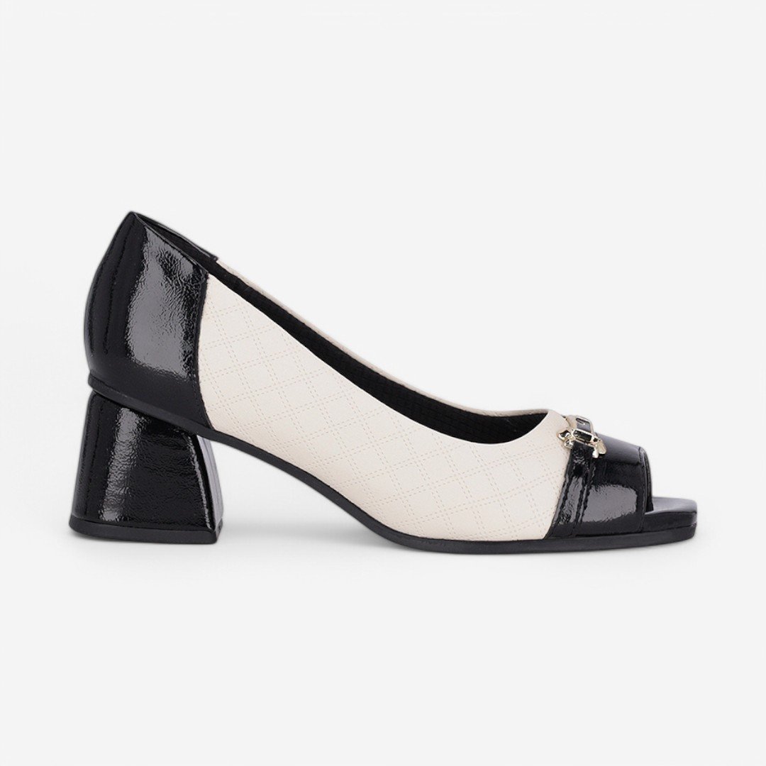 Sapato Peep Toe Piccadilly Feminino Preto/Off White