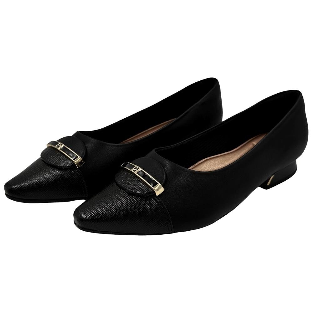 Sapato Piccadilly em Napa Bico Fino Salto Baixo Feminino Preto