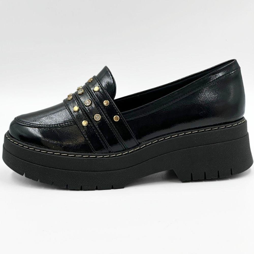 Sapato Piccadilly Loafer Tratorado em Verniz Feminino Preto