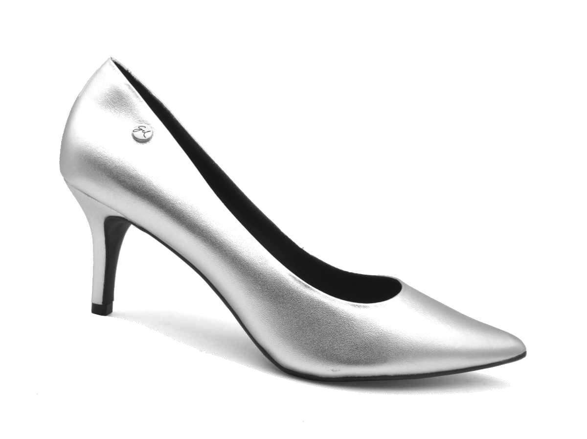 Sapato Scarpin Feminino de Couro Giulia Domna 405001 Salto Fino Prata