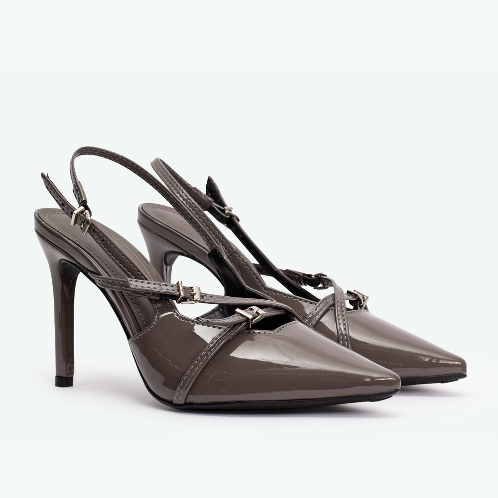 SAPATO SOCIAL FEMININO SALTO ALTO SLINGBACK MALU CINZA