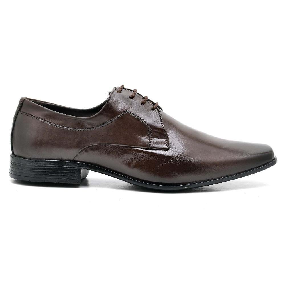 Sapato Social Masculino Couro Cadarço Bico Quadrado Casual Marrom