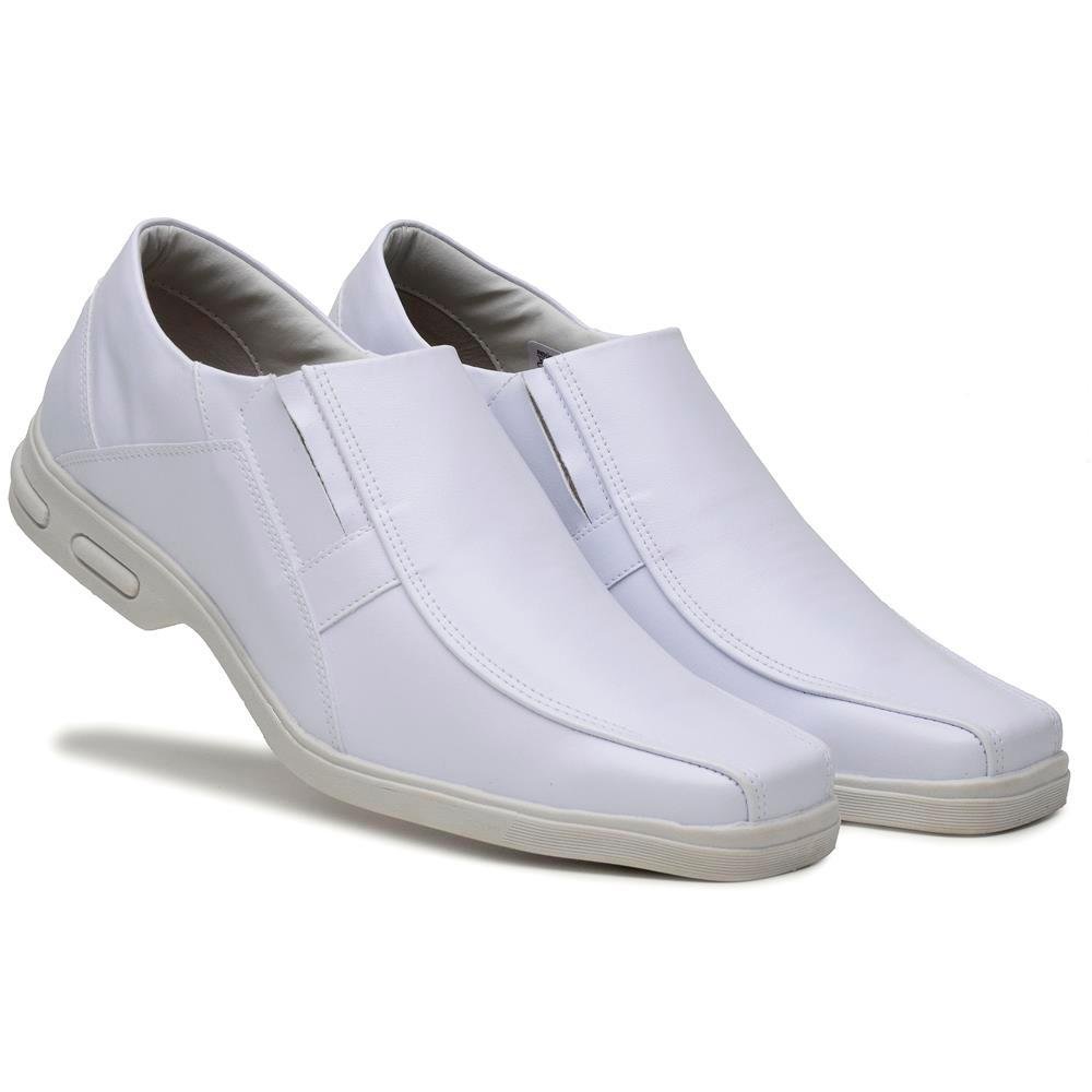Sapato Social Masculino Elástico Bico Quadrado Confortável Branco