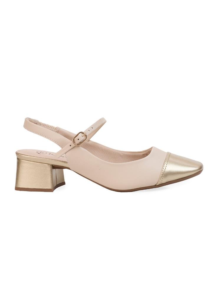 Scarpin Bebecê Mary Jane com Fivela e Salto Bloco Forrado Bege