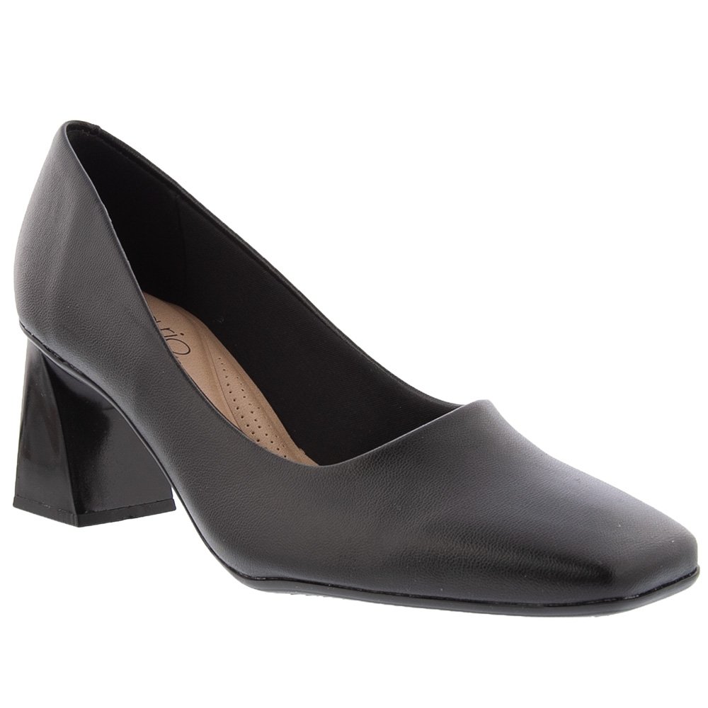 Scarpin Beira Rio Salto Geométrico Preto