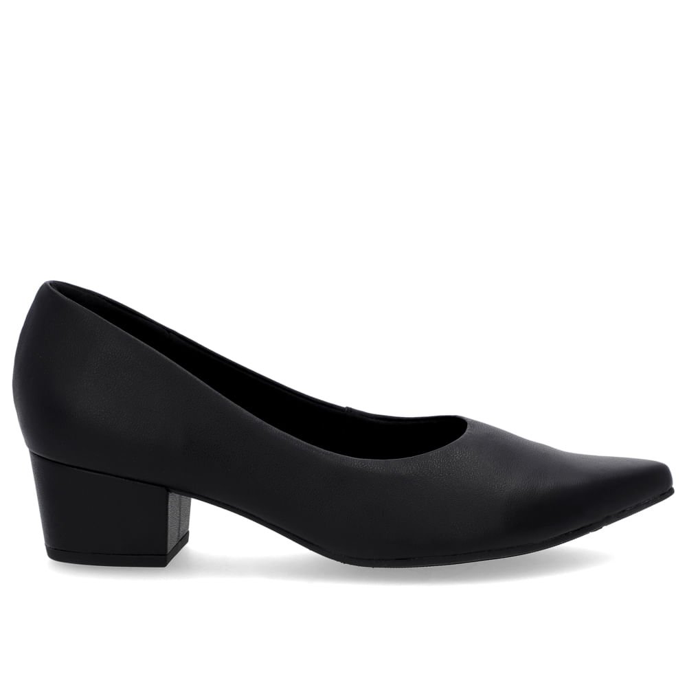 Scarpin Bico Fino Couro Preto Salto Bloco Preto