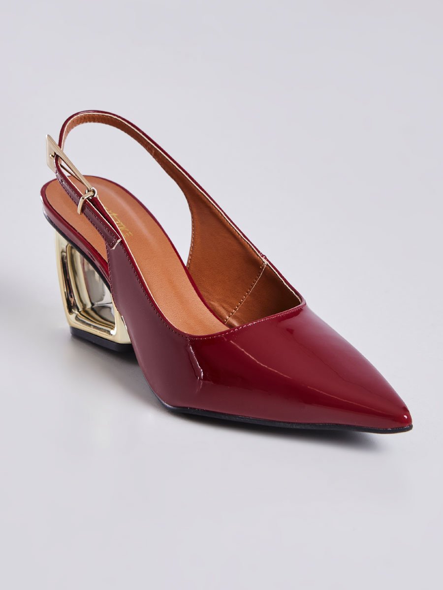 Produto: Scarpin com Salto Geometrico Vazado Vinho