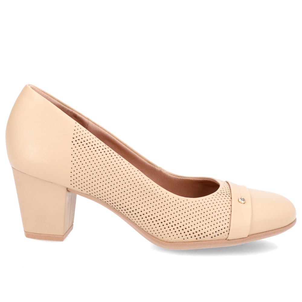 Scarpin Couro Bege Salto Bloco Médio Bege