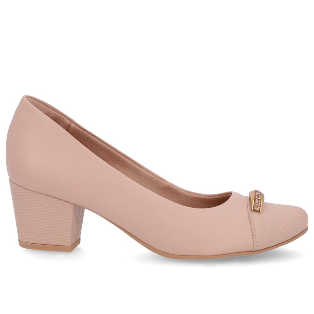 Scarpin Couro Rosa Salto Bloco Brilho Rosa