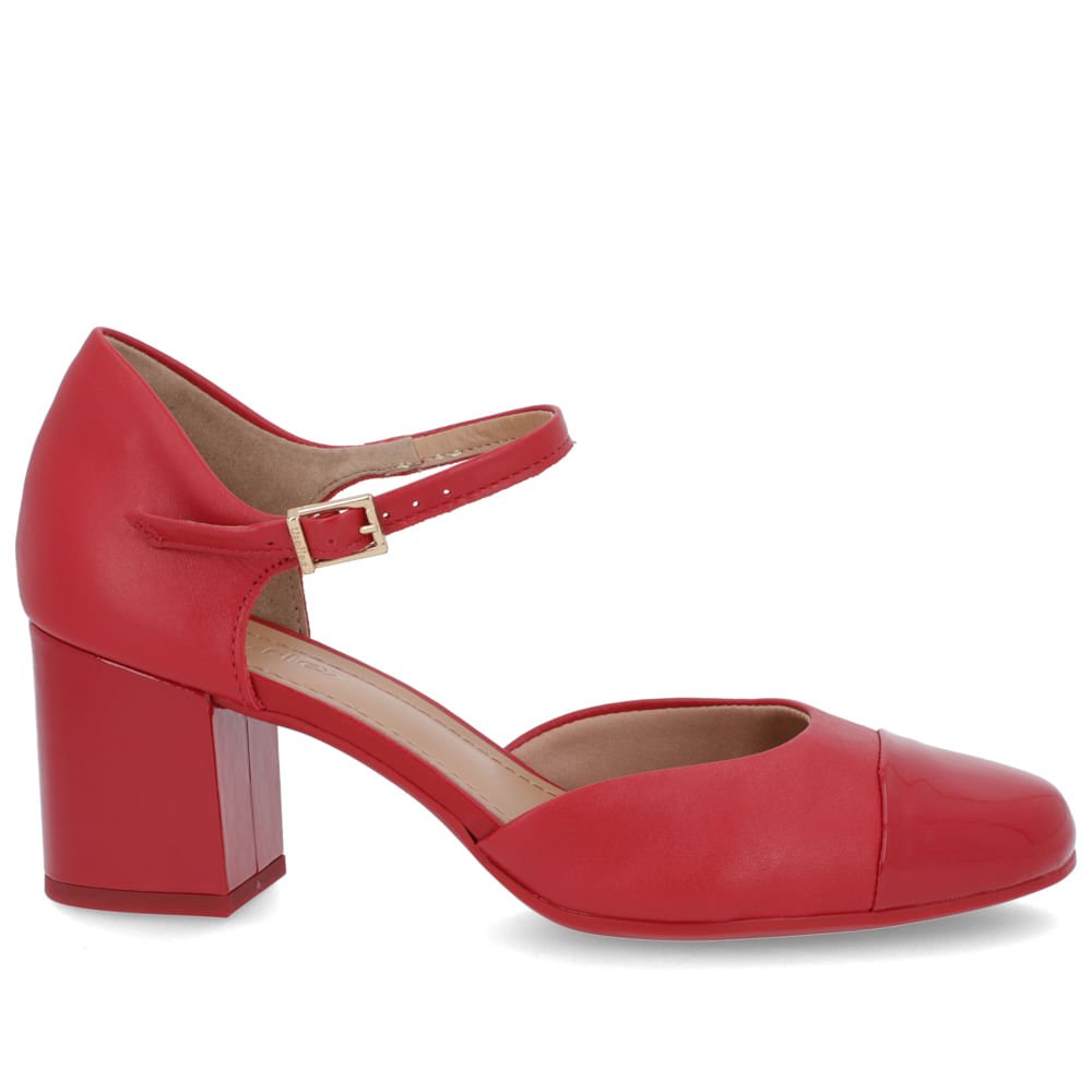 Scarpin Couro Vermelho Salto Bloco Vermelho