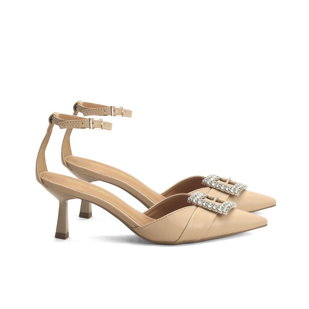 Scarpin de Festa com Fivela de Pedrarias Ana Mello Bege