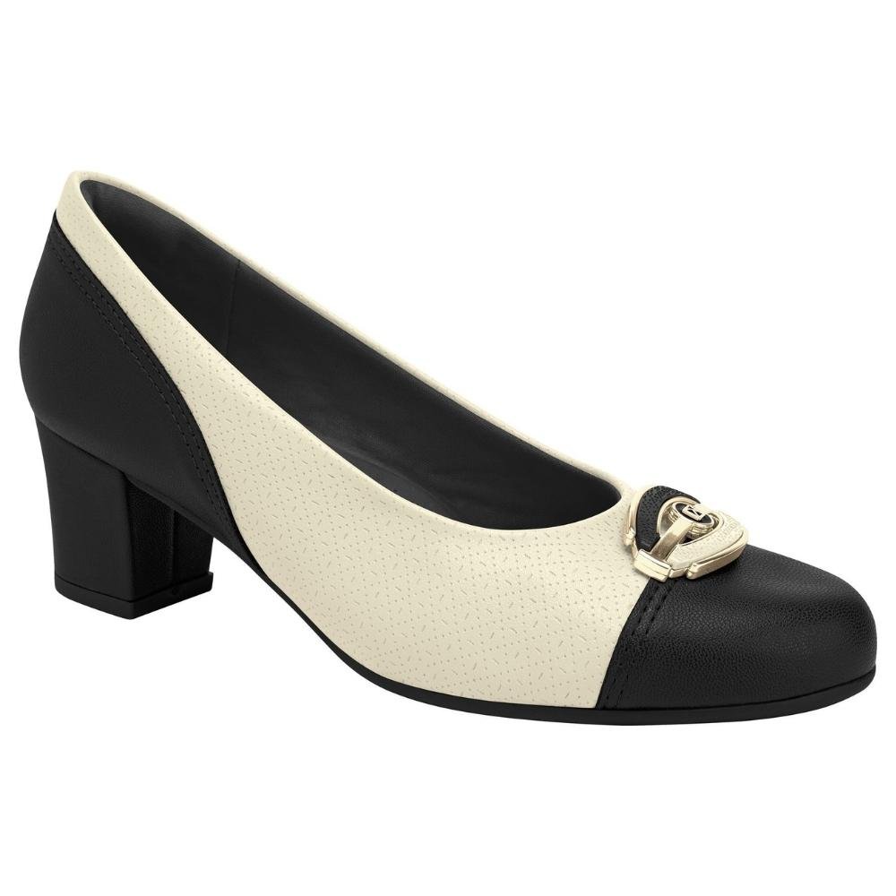 Scarpin Feminino Laura Off White Preto Piccadilly 110183-4 Branco/Preto