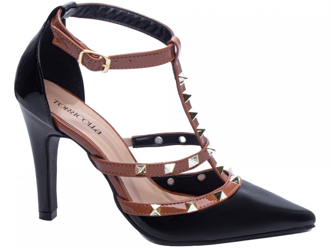 Scarpin Luxo Classe A - Salto 9cm Fino Marrom e Verniz Preto