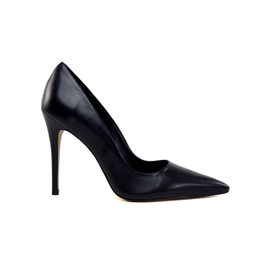 Scarpin preto em couro, marca Cecconello, bico fino, salto alto e cabedal em couro. Palmilha interna confy na cor preta, salto alto 11cm, sola natural com beira preta.