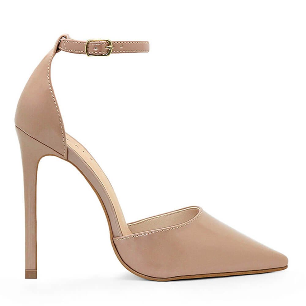 Scarpin Royalz Ankle Strap Verniz Salto Alto Fino Lana Nude Escuro Bege