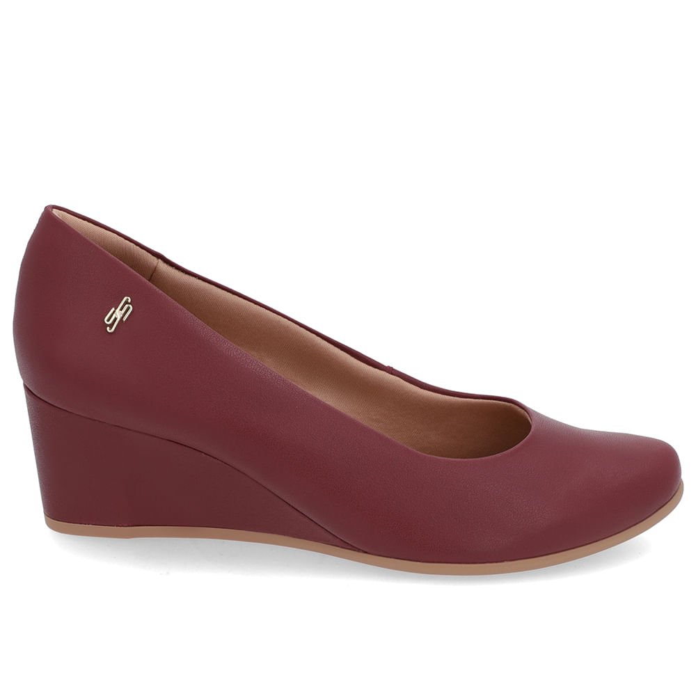 Scarpin Salto Baixo Couro Vermelho Bico Redondo Bordô