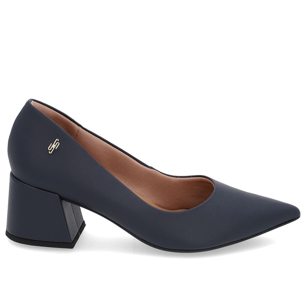 Scarpin Salto Bloco Couro Azul Bico Fino Azul