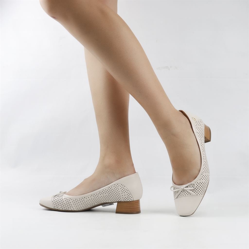 • Scarpin Salto Bloco Laço Couro Branco 1