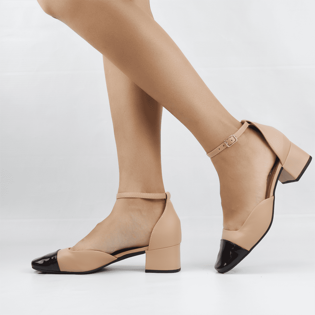 Scarpin Salto Bloco Verniz Bege