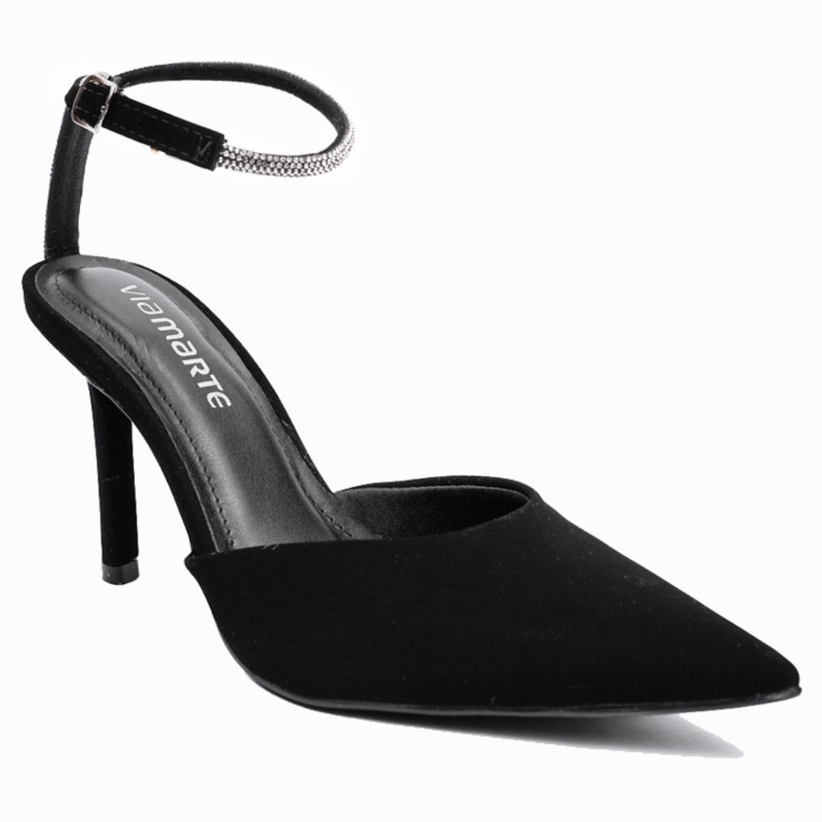 Scarpin Via Marte Salto Fino Strass Nobuck Feminina - Preto Preto