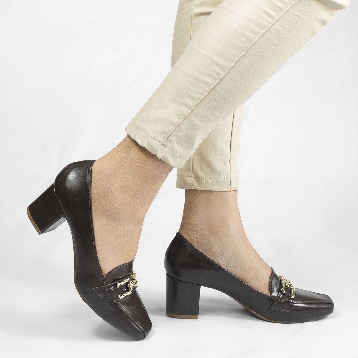Scarpin Zatta Retrô Salto Bloco Tainara Marrom