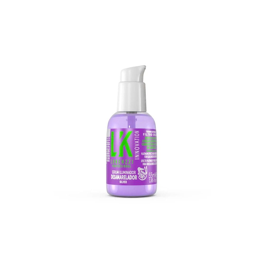 Sérum Desamarelador Lokenzzi 55ml O Serum Desamarelador Lokenzzi foi especialmente desenvolvido para os cabelos descoloridos ou grisalhos, eliminando o amarelado dos fios e proporcionando efeito platinado com brilho intenso. Modo de usar: Aplicar sobre os cabelos lavados, úmidos ou secos. Não enxágue.