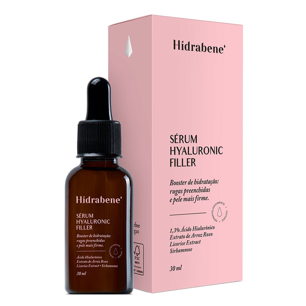 Com ação pro-age, Sérum Facial Hidrabene Hyaluronic Filler contém uma potente combinação de ativos hidratantes e antioxidantes que protegem contra o envelhecimento fisiológico da derme e estimulam a síntese de colágeno e proteínas.
