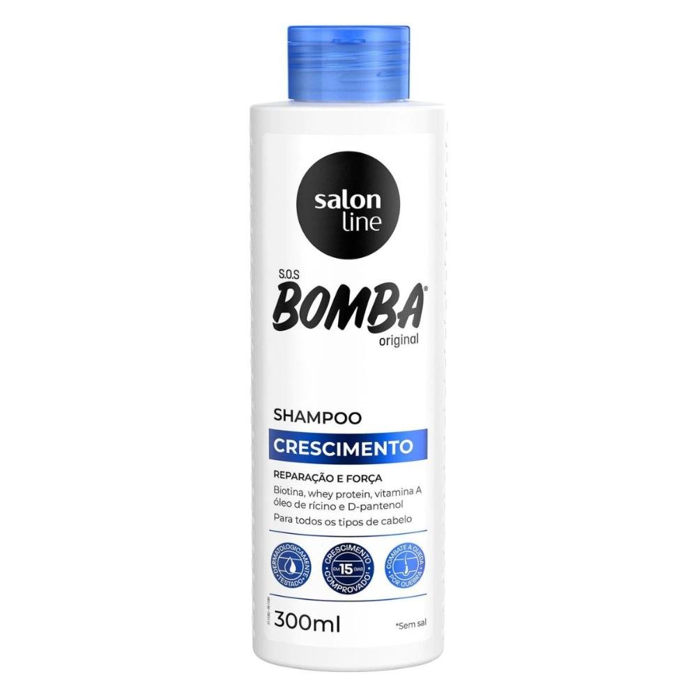 O Shampoo S.O.S Bomba Original conta com fórmula dermatologicamente testada e rica em ingredientes que garantem crescimento capilar comprovado em 15 dias, cabelos mais fortes, recuperados e saudáveis.