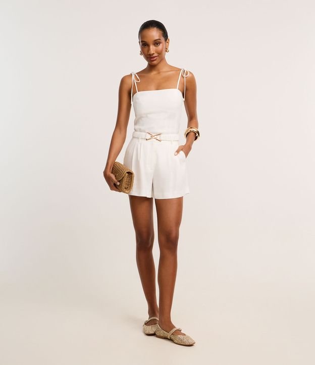 Short Alfaiatado Cintura Alta em Crepe com Cinto Elástico Off White