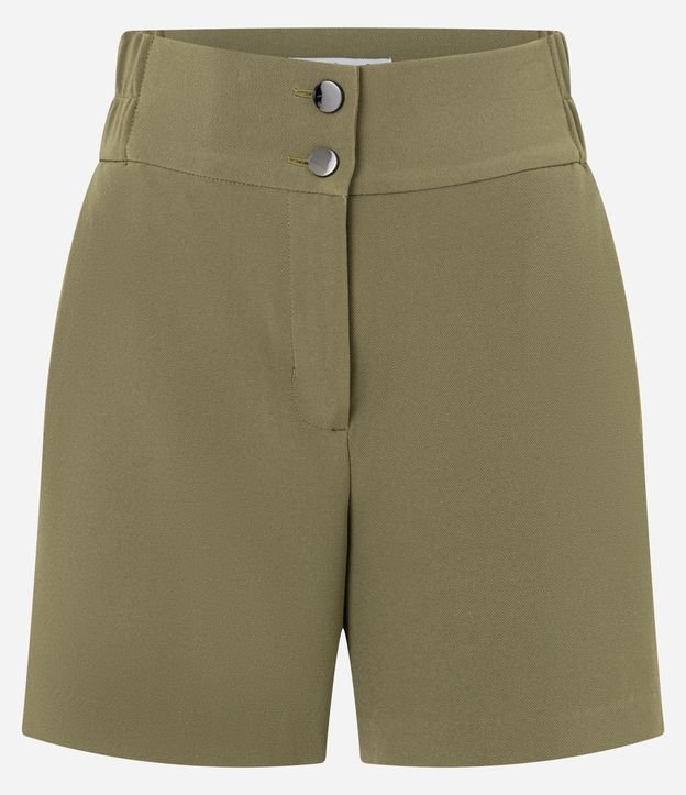 Short Alfaiatado com Cós Elástico e Abotoamento Duplo Verde Oliva