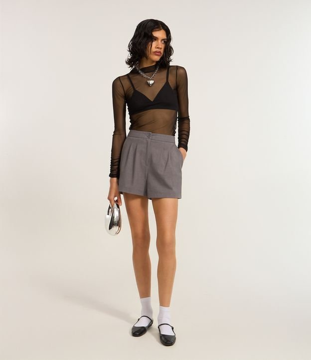 Short Alfaiatado com Pregas e Bolsos Cinza Escuro