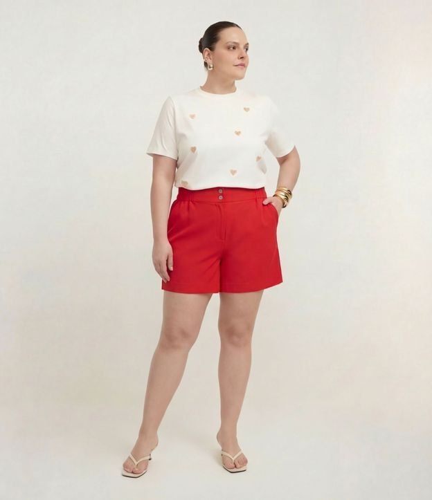 Short Alfaiataria com Elástico e Dois Botões no Cós Curve & Plus Size Vermelho