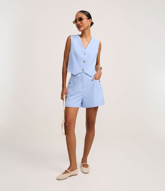 Short Alfaitado Cintura Alta com Bolsos Laterais Azul