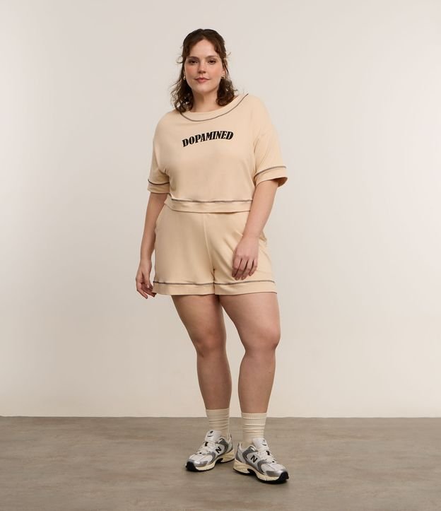 Short Amplo Esportivo em Moletom com Bolsos Curve & Plus Size Bege