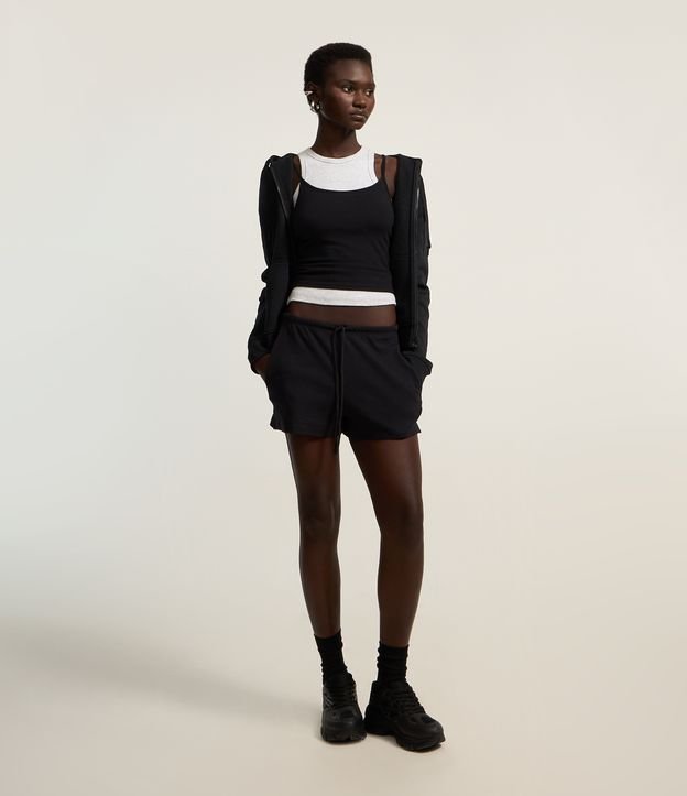 Short regular, básico com cintura média, cordão para ajuste, confeccionado em ribana e sem estampa.