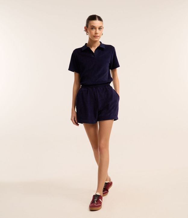 Short Canelado com Cós Elástico e Bolsos Funcionais