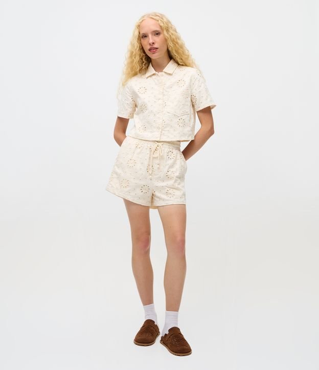 Short Cintura Alta em Laise com Cós Elástico Off White