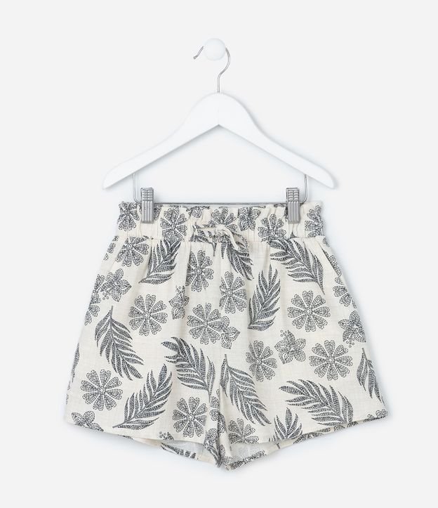 Short Clochard Infantil em Viscolinho Estampa Folhagens - Tam 5 a 14 Anos Bege